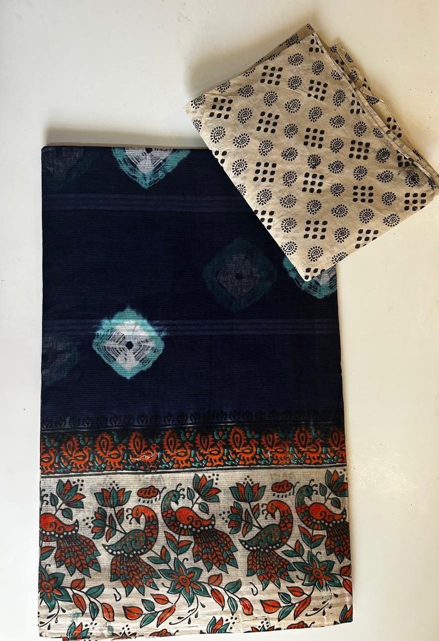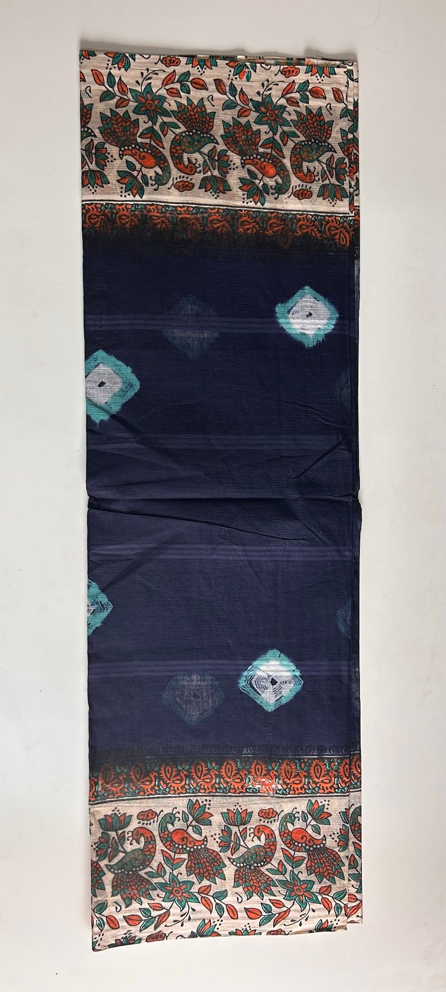 Color: Dark Blue with Multicolor Floral & Peacock Border