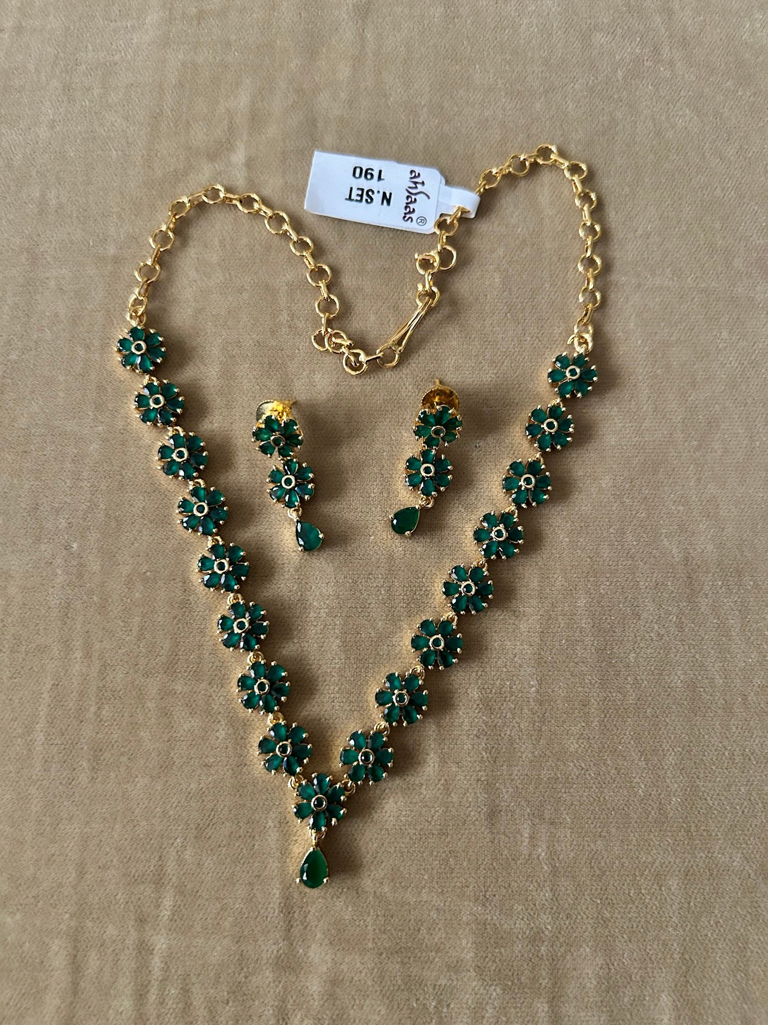 Green stone necklace set