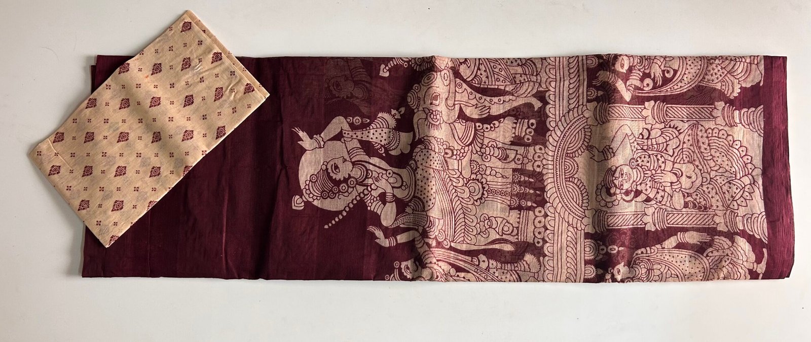 Be the first to review “Maroon Kalamkari Kota Cotton Saree”