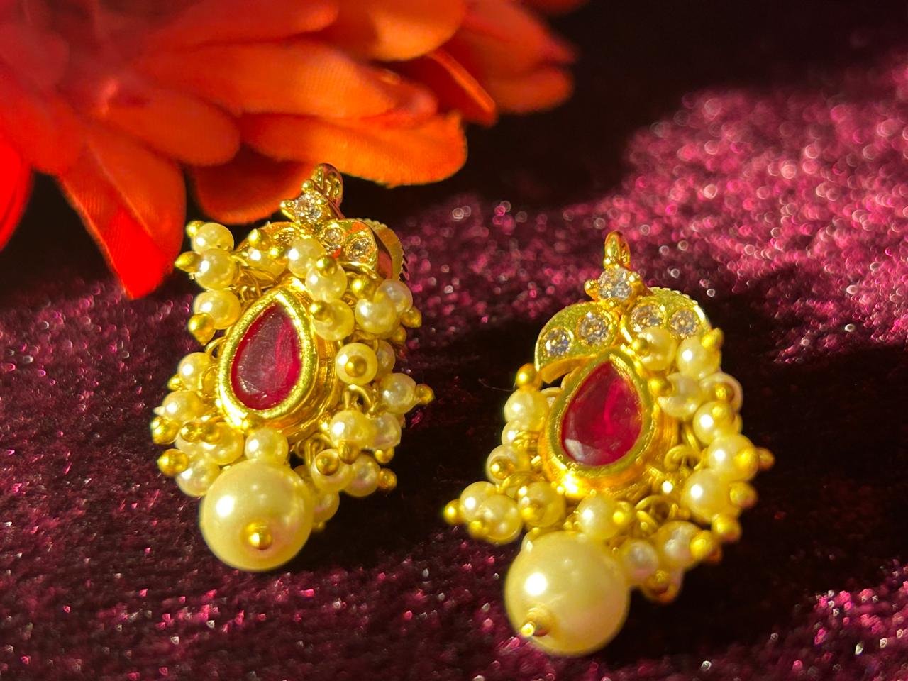 Pulivarthys Floral Design Stone Stud Earrings for Women & Girls